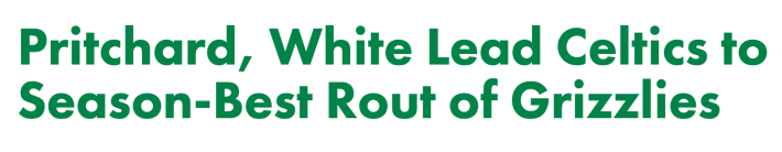 A game recap of Wednesday’s 131-95 victory, published on Celtics.com and NBA.com, praised Boston’s leading scorers Payton Pritchard and Derrick White, in that order. That led to an unfortunate headline, which Memphis Grizzlies beat writer Sharon Shy Brown captured in a timely screenshot on Thursday: